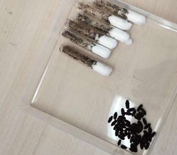 圖為花絨寄甲的幼蟲和成蟲。他們是害蟲天牛的天敵,科學繁殖天敵,可以做到生態(tài)護林 新華社記者王曉潔 攝
